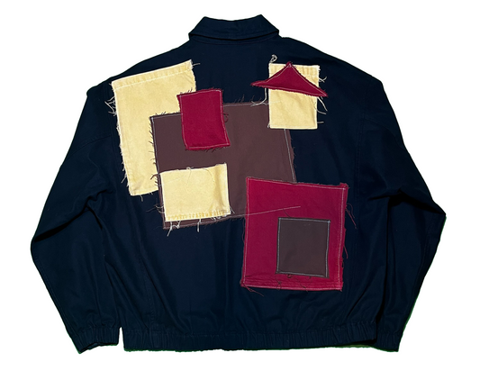 Custom Blue Cotton Jacket W/ Colored Pockets and Back Patchwork Size Large