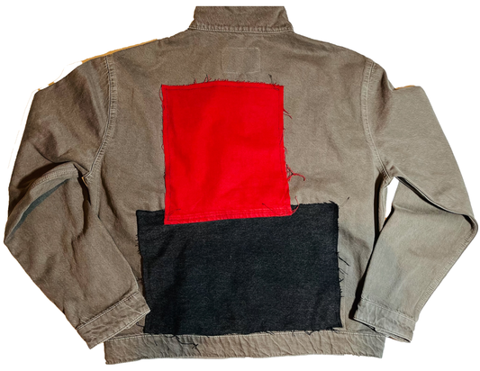 Cropped Gray Denim Jacket - Red & Black Denim Patchwork