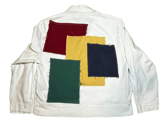 Custom White Cotton Jacket with Colored Pockets and back Patchwork Size Large
